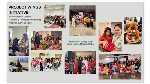 The workshop contributed to skill development and economic empowerment, and a total of 25 college girls left equipped with skills and confidence to apply photography in real-life opportunities. As a part of the WINGS initiative, this workshop reflects FLO Ahmedabad’s efforts towards offering earning opportunities and creative empowerment through skill development in the wedding and events industry.