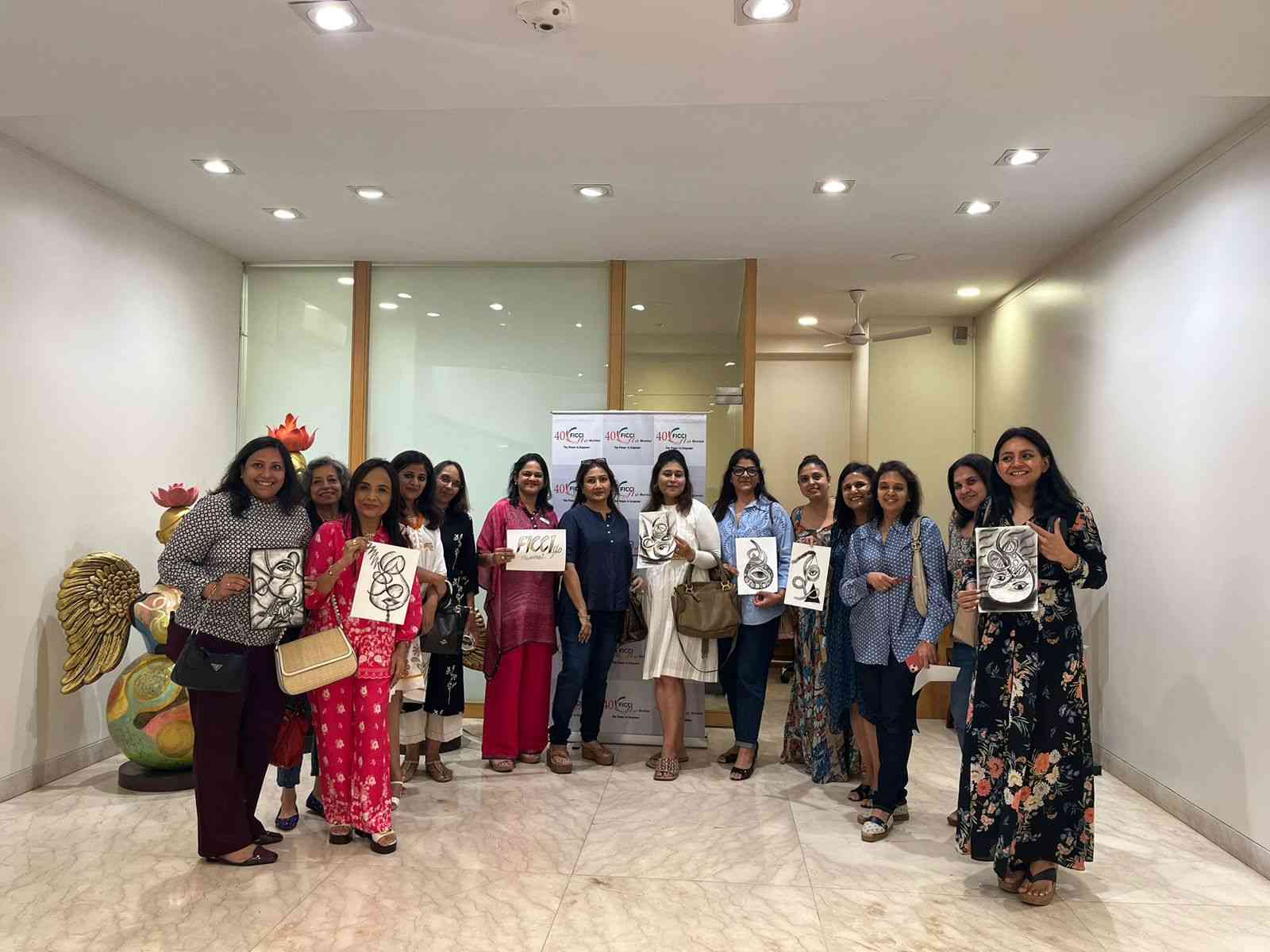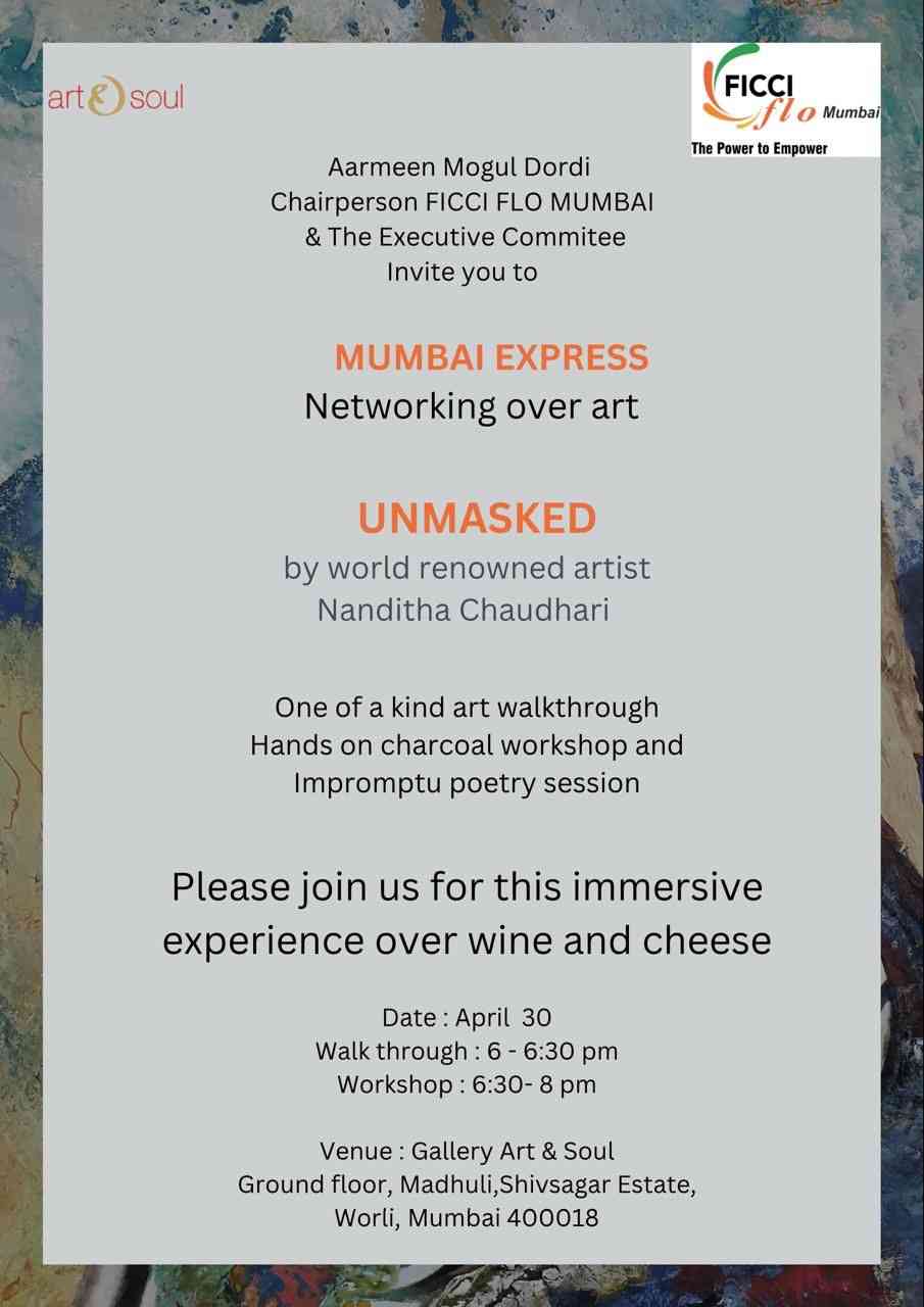 FLO Mumbai organised a members art networking event – Unmasked by world renowned artist Nandita Chaudhari one of a kind Art Workthrough , hands on charcoal workshop . Hosted in collaboration with the esteemed artist Nandita Chaudhri, the event unfolded as an immersive journey through the depths of artistic expression.