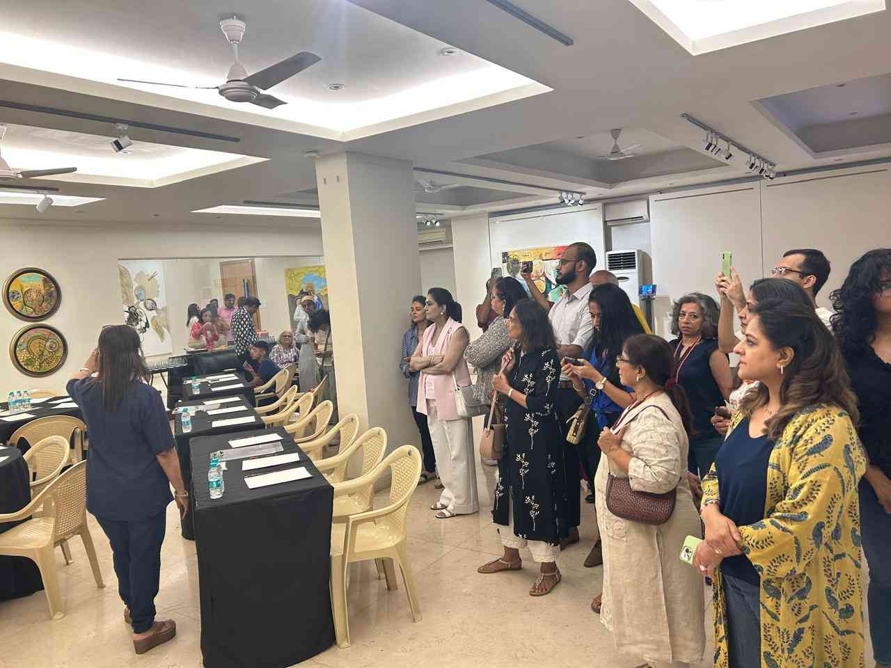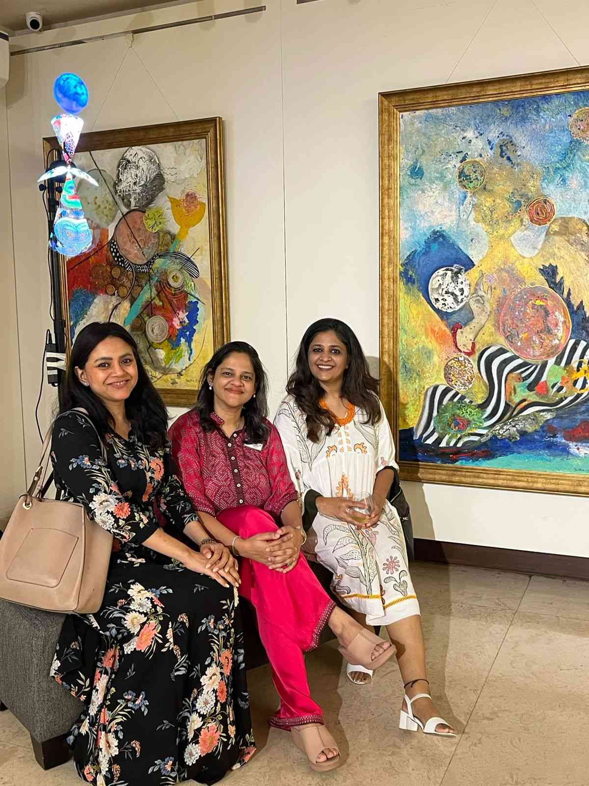 Members were invited to embark on a remarkable walk-through of Nandita Chaudhri’s evocative paintings, delving into the intricate layers of her work. What made this experience truly exceptional was the interactive dialogue led by the artist herself, as she intricately unveiled the technical nuances and emotional depths behind each stroke.Throughout the evening, Nandita Chaudhri ingeniously leveraged various mediums to bring her art to life, from mesmerizing holographic displays to poignant poems elegantly compiled into a published book. This innovative approach not only heightened our engagement but also provided a multi-dimensional perspective on the power of artistic storytelling.