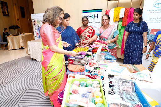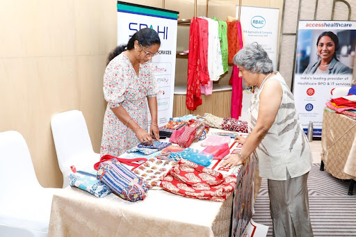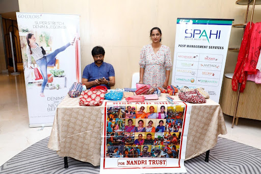 The second stall was organized by the Nandri Association India Public Charitable Trust and offered a range of items such as quilted handbags, sling bags, recycled sling bags, and recycled silk purses.