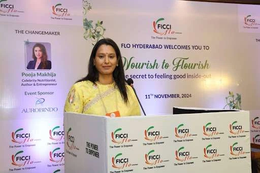 FLO Hyderabad organized an empowering wellness session, ‘Nourish to Flourish- The Secret to Feeling Good Inside-Out”, conceptualized by Chairperson Priya Gazdar, on November 11th, 2024. The session featured Celebrity Nutritionist Pooja Makhija and renowned Wellness Entrepreneur Suparna Trikha, who shared practical wellness insights.
