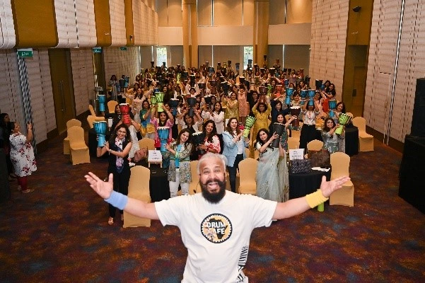 Following this, a special interactive session was planned for all the FLO ladies in association with the Drum Cafe, a leading team building and corporate events company. The Drum Cafe team went the extra mile in understanding our group and customize the drumming experience for us in a novel way.