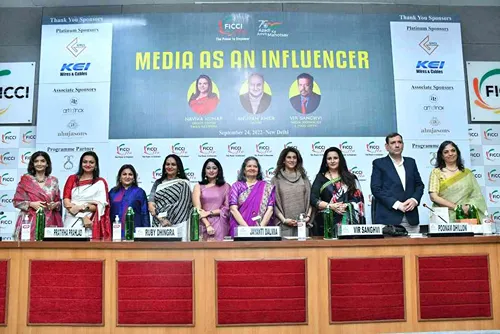 FLO Organised a panel discussion on Media as an Influencer, September 24, 2022, at FICCI. The panelists were renowned actor Poonam Dhillon; National affair Editor Times now Srinjoy Choudhary; Consulting editor WION, Gauri Dwivedi; media personality, Ruby Dhingra and renowned Bharat Natyam dancer, Pratibha Prahlaad.