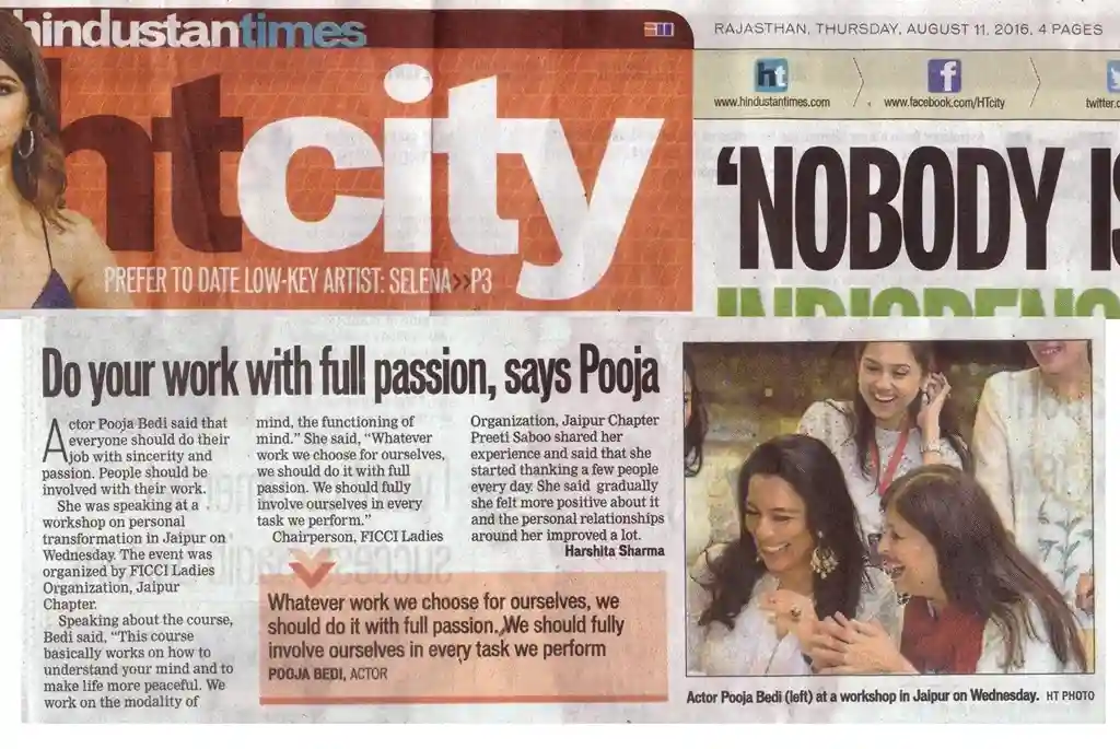 FLO organised a workshop on Personal Transformation Workshop with Ms. Pooja Bedi- a prominent TV, Film & Entertainment Media personality, fondly remembered by us for her role with Amir Khan in JO JEETA WOH SIKANDER , an award winning talk show host & relationship columnist HEART CHAKRA.