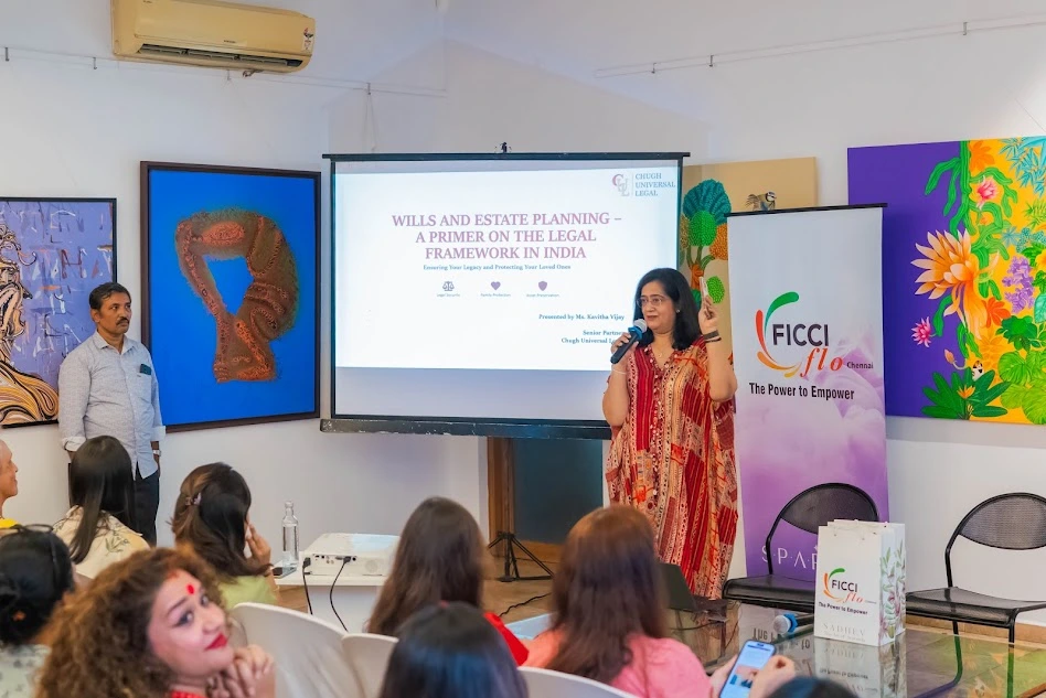 FLO Chennai, under the leadership of Chairperson Ms. Niyati A. Mehta, organized a thought-provoking session, “Safeguarding Your Legacy,” at Forum Gallery. An Estate Planning lecture was given by Mrs. Kavitha Vijay, Senior Partner of Chugh Universal Legal, who heads the Firm’s Chennai office. The topics she covered included the various aspects and the pros and cons of different instruments for securing one’s inheritance, ensuring a smooth transition to the bequeathed.