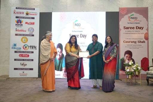Under the leadership of Chairperson Nalini Sanwal, FLO Kanpur celebrated Saree Day, under the National Initiative – Fashion and Jewellery vertical. The event featured a special interaction with Guest of Honor Gaurang Shah, a national award-winning artisan renowned for his mastery of weaves and passion for traditional textiles. This celebration brought together FLO members to honor the beauty and cultural significance of sarees and was joined by 150 members.