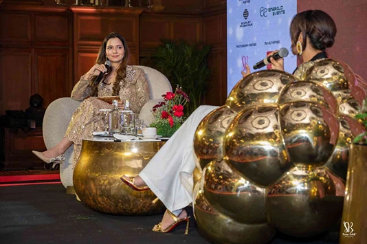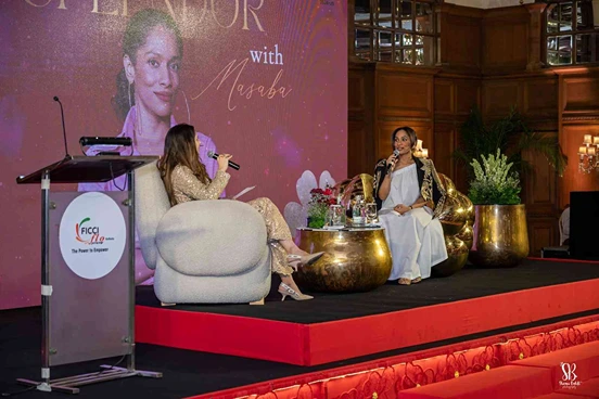 * Drawing from her own experiences as the daughter of actress Neena Gupta and cricketer Vivian Richards, Masaba spoke about how her mixed heritage and the support from her family have been integral to her success and identity as a designer. Moreover on how she turned the taboo of being an illegitimate child into a strength and a brand (Love Child – makeup line)!