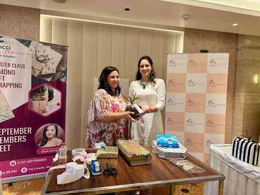 Led by Deepti Gandotra, she taught two distinct methods of Japanese-style gift wrapping along with an exclusive bow-making technique. The session was not only informative but also enjoyable for the attendees, adding a creative touch to the festive season preparations.