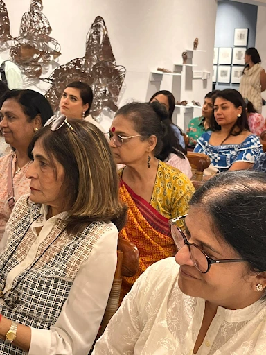 100+ attendees, including YFLO members, patrons of the arts, cultural leaders, collectors, and entrepreneurs, were present at this event. The YFLO x Exhibit 320 evening was a confluence of creativity, dialogue, and community. Through Shared Worlds, members were invited not just to view art, but to enter into its layered meanings, pausing, reflecting, and connecting with questions of memory, identity, and transformation. Shared Worlds was designed to immerse YFLO members in an artistic journey that celebrated both the legacy and the evolving practices of contemporary Indian art.