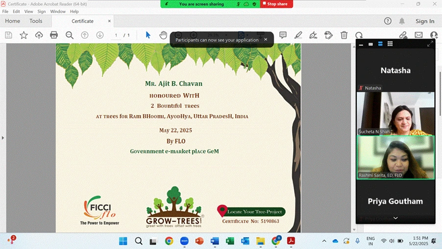FICCI FLO, led by 42nd National President Ms. Poonam Sharma, in collaboration with GeM, organized a webinar session, featuring Shri Sanjiv Singh, Joint Secretary, DPIIT, as the Chief Guest. The session was also joined by Ms. Pooja Garg, National Senior Vice President, and Ms. Sucheta Shah, National Initiative Lead – MSME Assist Cell. Ms. Sucheta Shah delivered the welcome note, which was followed by President Ms. Poonam Sharma’s speech.