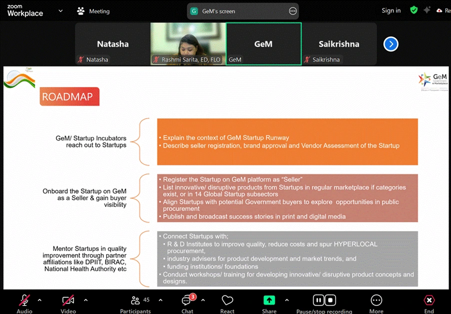 GeM SAHAYAK and GeM SAHAY Programs were introduced as support mechanisms in the session. Innovative marketplace tools – EMD through UPI/cards, AI/ML automation of VA/VAE processes, and icons to distinguish women-led product catalogs were also showcased. Ms. Pooja Garg delivered the Vote of Thanks. The online session empowered the members to gain first-hand knowledge and promote the GeM platform among women entrepreneurs, encouraging them to become part of an inclusive and efficient public procurement ecosystem.