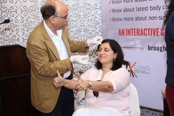 The event commenced with Dr Lokesh Kumar, a famed cosmetic surgeon from Delhi sharing about the surgical & non surgical ways of fat reduction. He went on to explain the non surgical facial treatments wherein the ‘thread lift ‘is particularly trending these days. Aman Dua, a city based dermatologist & a renowned expert for non surgical facial aesthetics, started with a message of workout being undoubtedly the best anti -ageing treatment. The members very excitedly experienced live botox & filler administration which are instant but short term facial rejuvenation procedures.
