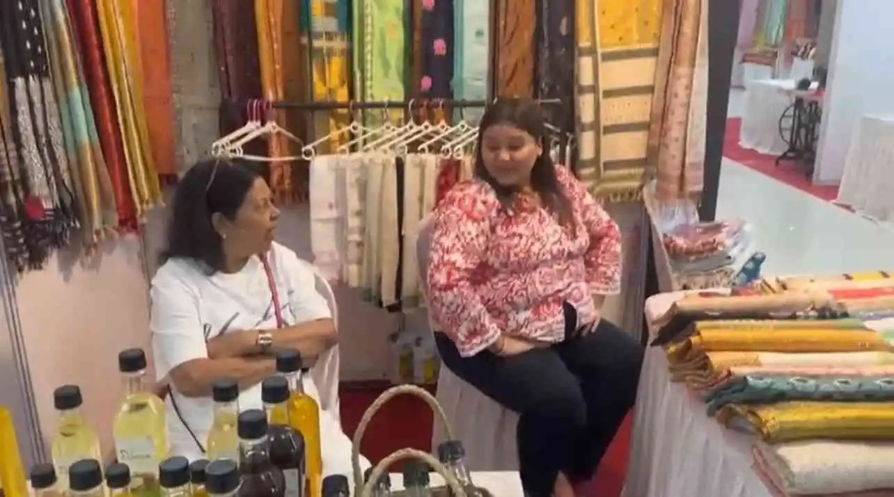 From June 14-18, The Small Industries Development Bank of India (SIDBI) organized a fair at the NEDFi Convention Centre in Guwahati, championing North East entrepreneurship. FICCI FLO was offered a stall where members Mitrani Kakati (TiruÍs Boutique, Assam silk), Sweta Bagaria (Aamolik, cold-pressed oil), and Anannya Sharma (handloom products) shared the stall and showcased their businesses.