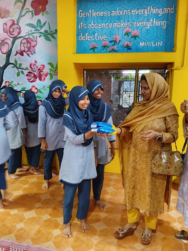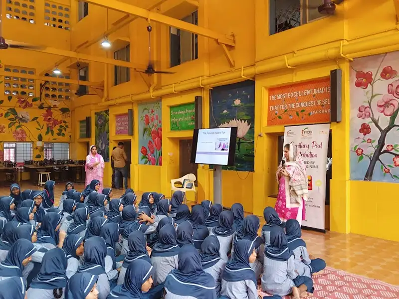 A special awareness session was held at the GH Courtyard, Anjuman e Himayath e Islam school, led by Dr. N. Nikanth Nasreen, who delivered an informative and engaging talk for the teenage girls. The session covered essential topics, including proper menstrual hygiene practices, correct sanitary napkin usage and disposal methods, the importance of staying hydrated during menstruation, and safe intimate hygiene habits.