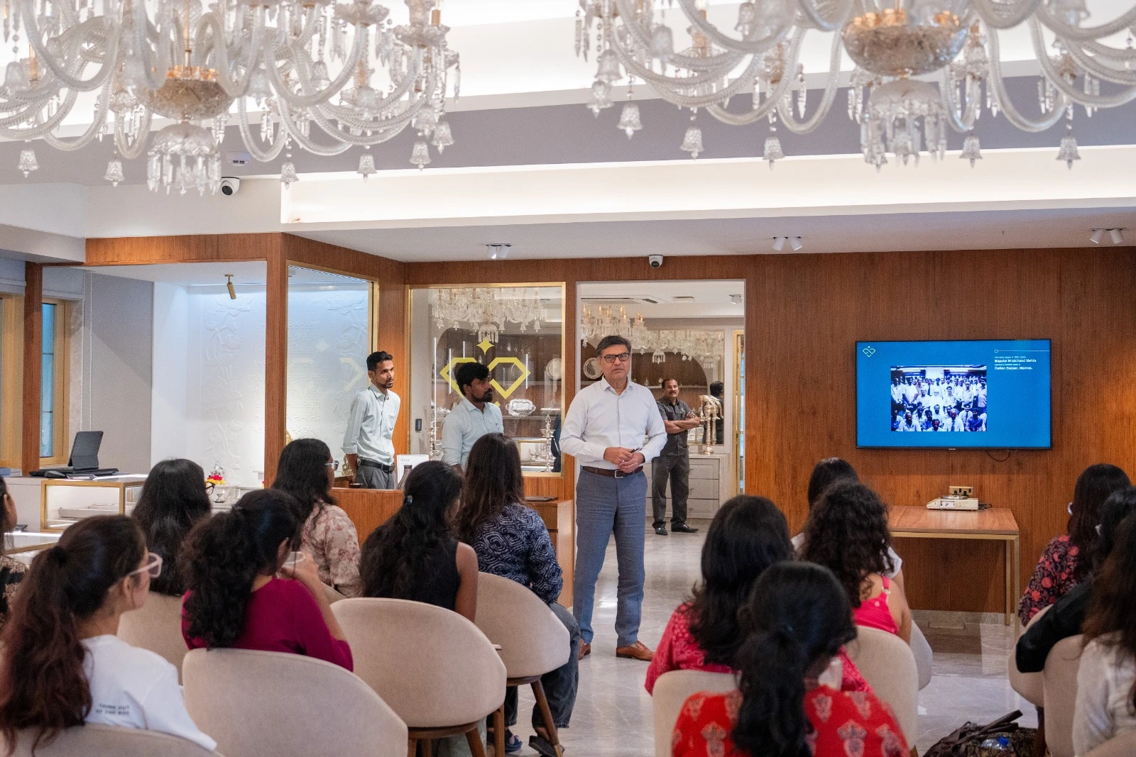 The interactive session provided students with in-depth knowledge of the jewellery industry and valuable real-time exposure. Mr. Abhay explained key aspects such as ideation, idea validation, IP creation, design thinking, product development, next steps, and building their own brand.