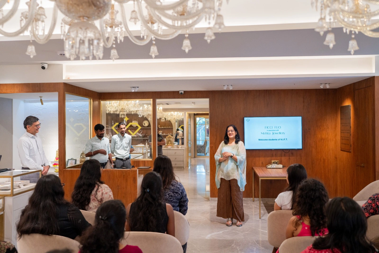 FLO Chennai, under the leadership of Chairperson Ms. Niyati A. Mehta, hosted an insightful session on “The Art and Science of Jewellery” at Mehta Jewellery, led by industry specialist Mr. Abhay S. Mehta. It marked the first-ever initiative by FLO Chennai towards planning an MoU with NIFT.