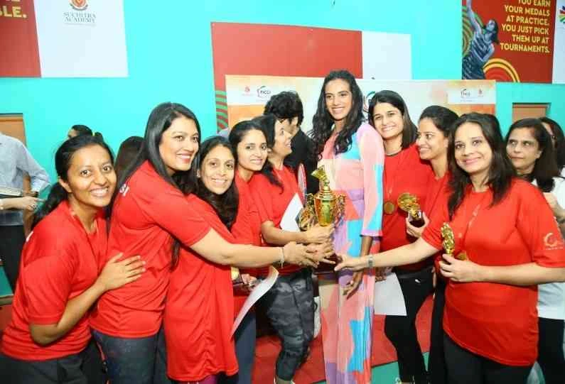 The Badminton League started with Practice Sessions for the 4 finalized teams – Team A (Yellow Team), Team B (Red Team), Team C (Blue Team) & Team D (Pink Team). The final The Badminton Tournament was held on the 21st of November at Suchitra Badminton Academy, with Badminton Champion P V Sindhu as the Chief Guest.