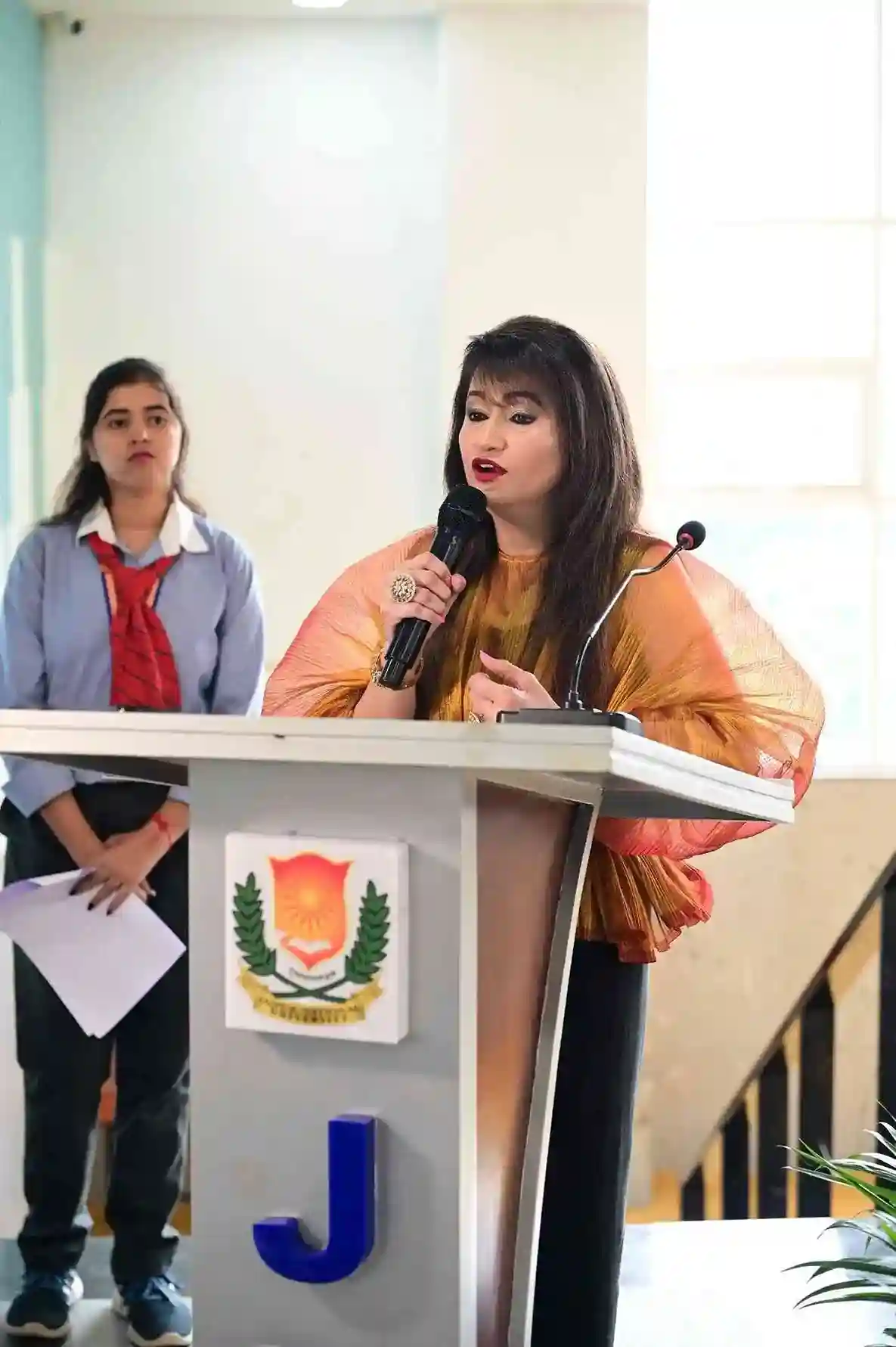 ● Felicitation Ceremony: Dr. Preeti Bakshi, Executive Director of Jaipur National University, graciously facilitated Ms. Raghushree Poddar. In a heartwarming gesture, Ms. Poddar reciprocated by honoring Dr. Bakshi with a beautifully handcrafted bouquet. Her immense support in providing the venue.