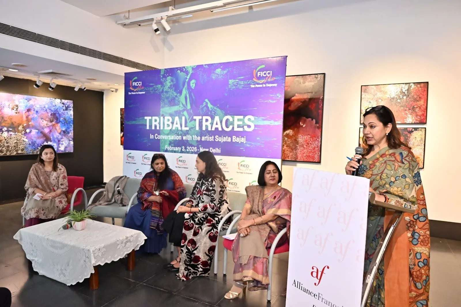 FICCI FLO, under the leadership of 42nd National President, Ms. Poonam Sharma, organized a culturally-rich art walkthrough and conversation, “Tribal Traces – In Conversation With Sujata Bajaj” at Gallarie Romain Rolland, Alliance Francaise de Delhi, New Delhi.