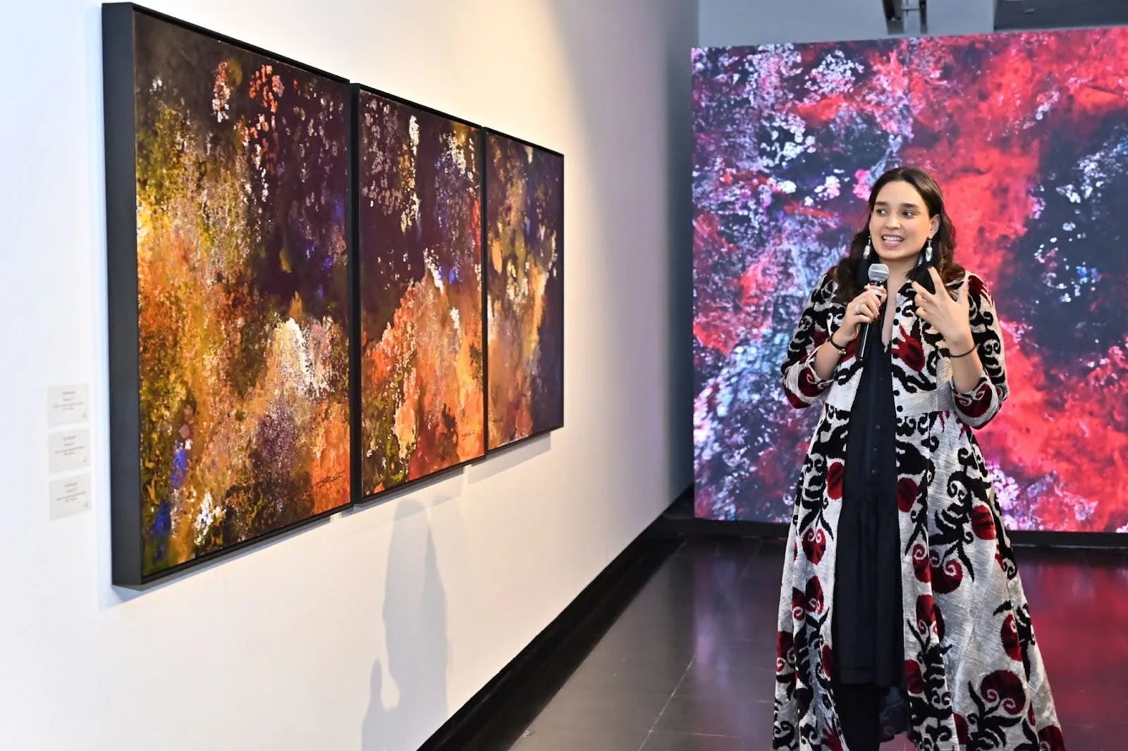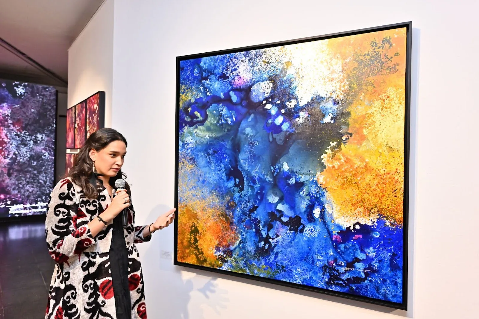 A fine arts graduate from Beaux-Arts de Paris, Ms. Bajaj led a very interesting talk with the FLO members and talked about her profound six-year engagement with inner and cosmic spaces. The walkthrough and conversation allowed attendees to pause, reflect, and experience art as a contemplative and immersive process. Art lovers from Delhi witnessed this cultural gathering, which took them on a powerful journey through cosmic textures & vibrant abstraction.