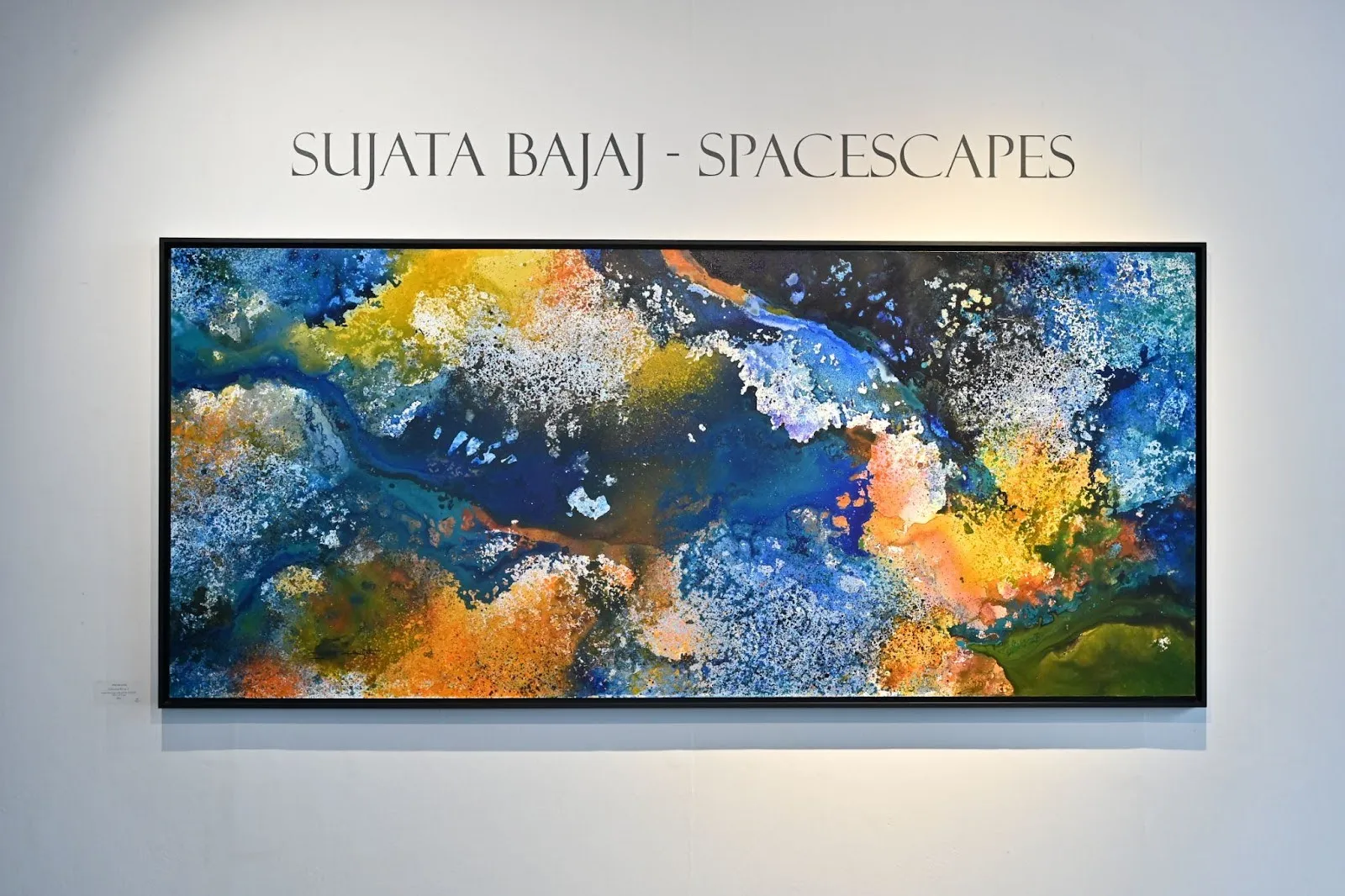 Renowned contemporary artist Ms. Sujata Bajaj, well-known for her Indian Tribal Art, came up with her major abstract presentation titled Spacescapes for this special event. Sujata’s artistic journey is comprised of Indian thought traditions, from tribal art forms to ancient Sanskrit texts and the Bhagavad Gita, with European modernist practices.