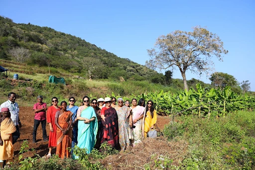FLO President Joyshree Das Verma, Chapter Chairperson Meena Swaminathan, Initiative Head Dr. Kamini Surendaran, and members inspected the fields in the hills and were happy to witness the impressive cultivation.