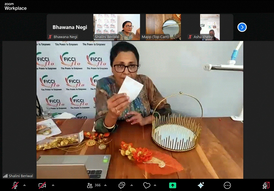 FICCI FLO, under the leadership of National President Ms. Poonam Sharma, hosted the second session of the Gift Packaging Skilling Workshop Series, “Flower Bunching Techniques,” focused on teaching income generation skills to the attendees. This virtual workshop was held under the National Initiative – Skilling in the Wedding Industry.