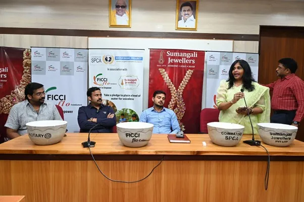 FLO Coimbatore launched a large-scale Water Bowl Project on April 11, in the presence of the District Collector. This initiative, aligned with National themes of Sustainability and Inclusivity, saw the placement of 1,150 water bowls across Coimbatore to provide relief for stray animals and birds during the summer. Valued at Rs. 2.5 lakhs, the project promoted compassion for animals and environmental care.