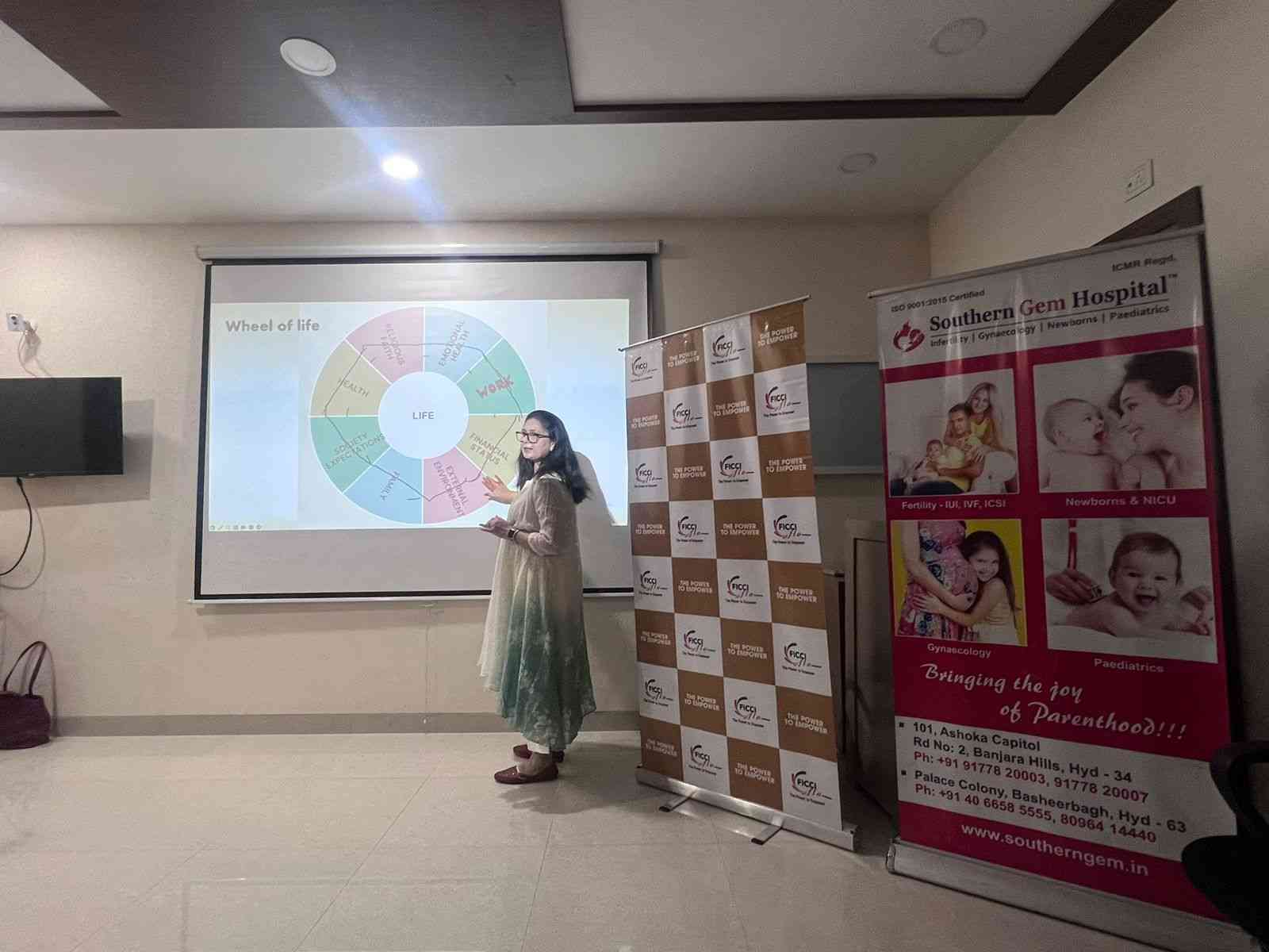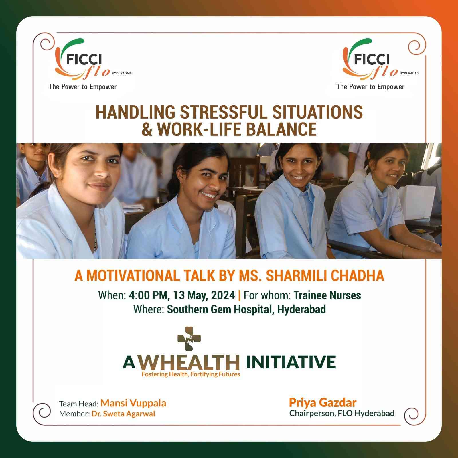 FLO Hyderabad has planned a series of talks on Holistic personality development, Image management and confidence-building at various venues such as Govt. schools, Hospitals and orphanages. The first talk of the series by FLO member Sharmili Chaddha focused on ‘Stress management and Work-life balance’ for trainee nurses at Southern Gem Hospital, Basheerbagh, Hyderabad.