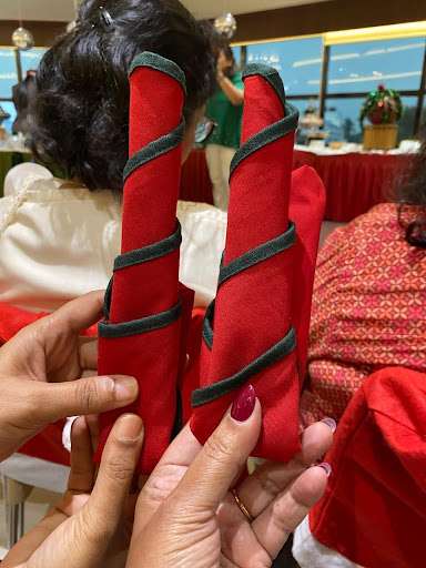 Ms. Gunit Singla conducted a live demonstration of mulled wine preparation, served as a refreshing beverage. She also led an engaging session on napkin folding, teaching two elegant designs — the Candle Fold and the Christmas Tree Fold, the latter being demonstrated in two variations.