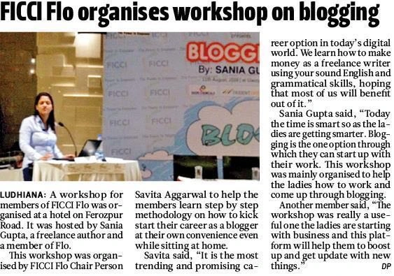 Ficci-Flo Ludhiana organised yet another meaningful work shop on “BLOGGING “by Sania Gupta It Was Held at