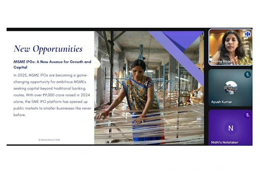Ms. Mamta Binani & Mr Harsh Gadodia from the fields of taxation, law, and finance provided insights on GST, income tax, and various government schemes available to MSMEs. They used a PowerPoint-style breakdown and clear slides to make MSME and GST easy and simple.