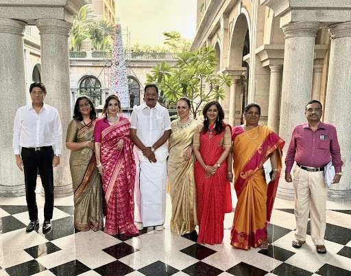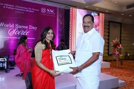 The soiree was graced by the presence of the Honourable Minister, Thiru R. Gandhi, who lit the ceremonial lamp alongside distinguished guests, including FLO Chennai Senior Vice Chair Ms. Niyati Mehta, representatives from NAC Jewellers, and other dignitaries.