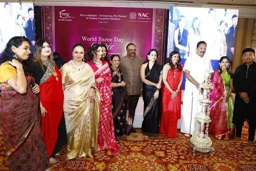 FLO Chennai, under the leadership of Chairperson Dr Divya Abhishek, hosted the “World Saree Day Soiree” at The Leela Palace, celebrating the timeless elegance of sarees. The evening was curated by the Fashion & Jewellery vertical, headed by Ms Vimmi Deepak, and supported by vertical members Deepika Goyal, Amrit Rattha, Gitanjali Prashant, and Kavita Modi, with a vision to promote sarees as a symbol of India’s rich heritage, art, and tradition. 470 people attended the event.