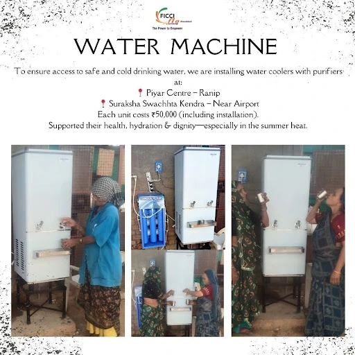YFLO Ahmedabad, led by Chairperson Neha Goyal, installed purified water coolers especially for ragpicker women at two community centres. The initiative aims to provide safe and cold drinking water, especially during peak summer heat. The two water coolers are set up at Piyar Centre – Ranip and Suraksha Swachhta Kendra – Near Airport. Each unit costs ₹50,000 (incl. installation). The first installation of a purified water cooler took place on July 04, and the second installation on August 02, 2025.